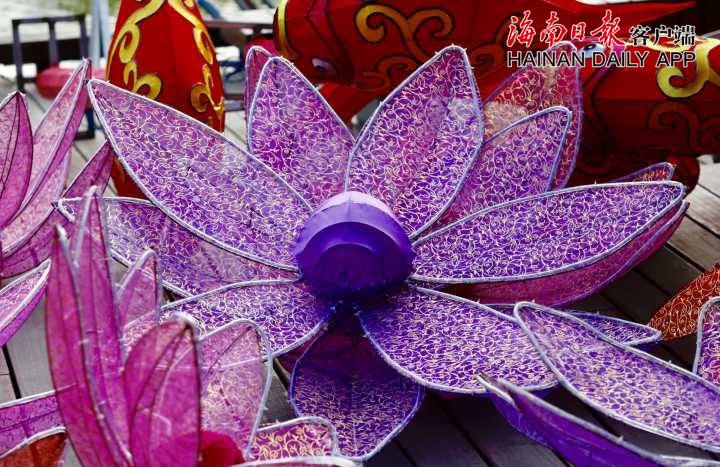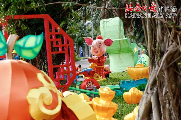 花燈造型共有十幾種,有卡通人物、蓮花、生肖豬、年年有魚等,顏色鮮亮,格外引人注目。據海南日報客戶端記者陳若龍 攝