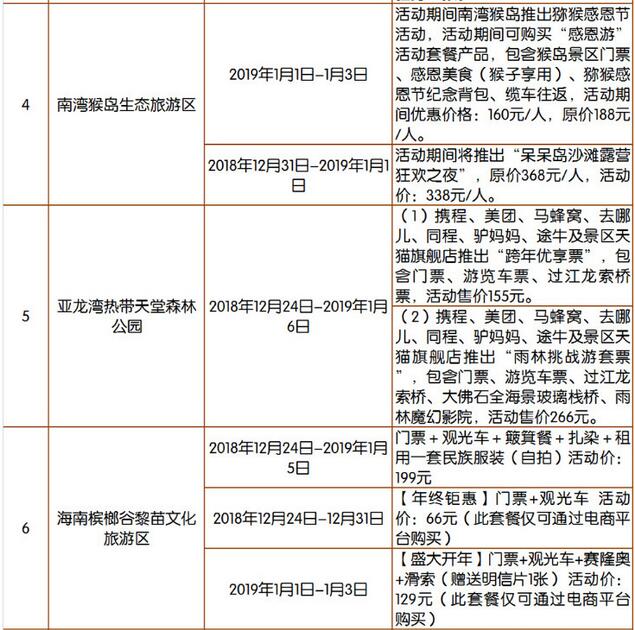 優惠詳情見2019年元旦期間海南旅游景區優惠活動匯總表。