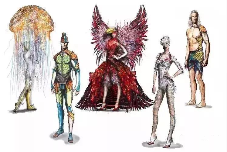 曾參與太陽馬戲團以及加勒比郵輪等多個大型服裝設計工作的國際設計師們,以海洋元素為靈感,采用適合水舞臺的特殊面料制作了百余件精良的服飾和配飾。