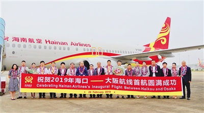 海口?大阪直飛航線正式開通。本報記者張茂 通訊員唐可欣 攝