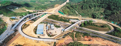 3月3日,在海南萬洋高速公路嶺門樞紐互通,互通區內橋梁已全部完工。