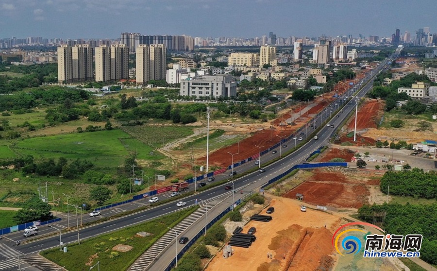 海口江東新區(qū)白駒大道改造及東延長(zhǎng)線項(xiàng)目建設(shè)現(xiàn)場(chǎng)。海報(bào)集團(tuán)全媒體中心記者 張茂 通訊員 王聘釗 攝