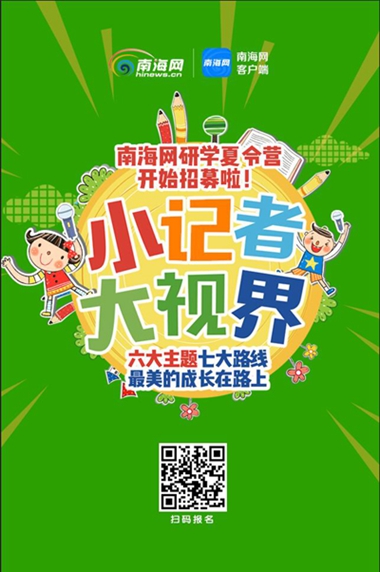 南海網(wǎng)、南海網(wǎng)客戶端???月4日消息(南海網(wǎng)記者 孫令正)2019年暑假即將來臨,想讓孩子在暑假有所成長,該怎么安排?5月4日,南海網(wǎng)小記者研學(xué)旅行夏令營正式啟動招募啦!今年的南海網(wǎng)小記者研學(xué)旅行夏令營以六大主題,打造七條不同特色的研學(xué)旅行路線供你來選擇。報名參與的中小學(xué)生在研學(xué)旅程中,不僅能開拓視野、增長見識,將可以接受專業(yè)的采、寫、拍、編等新聞知識學(xué)習(xí),并通過實踐成為優(yōu)秀的南海網(wǎng)小記者。