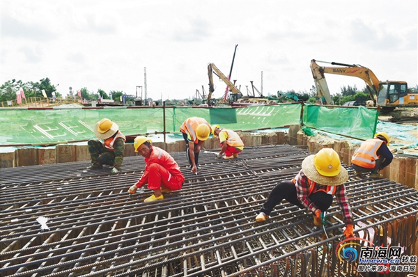 近日,在??谑薪瓥|新區(qū)白駒大道改造及東延長線項目建設現(xiàn)場,工人們揮汗勞碌,隨處可見火熱的施工場景。