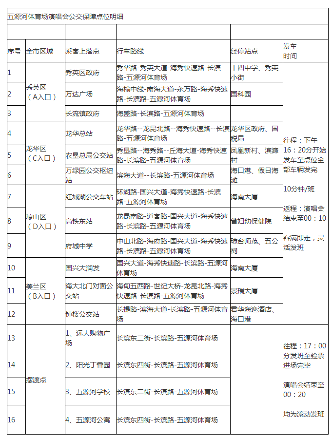 附:五源河體育場演唱會公交保障點位明細(xì)