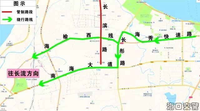 (一)由海秀快速路前往長流方向的車輛,建議行駛至長天路匝道口或長彤路匝道口下海秀快速路,經(jīng)南海大道、海榆西線行駛至長流方向。