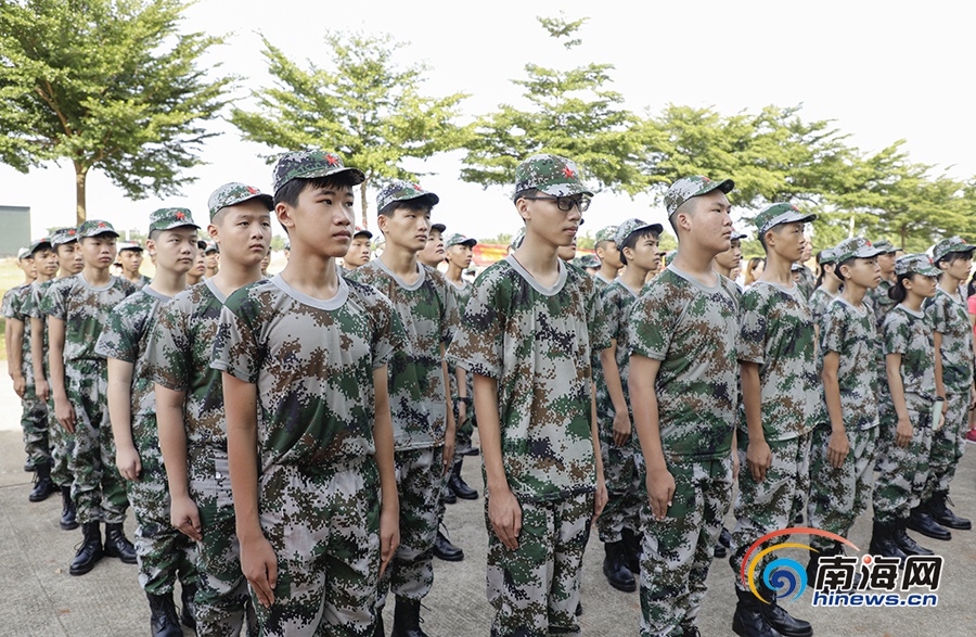 “齊步走,一二一,鍛煉身體!保衛祖國!”在海口市民兵訓練基地,53名初中生頭戴民兵帽,身穿民兵衫,身姿挺拔,揮汗如雨,口號聲響徹整個訓練場。