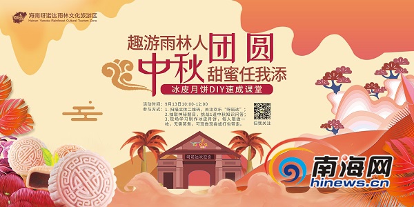 海南旅游頭條、南海網、南海網客戶端???月10日消息(南海網記者 孫令正 通訊員 葉玉琪)中秋佳節將至,為向中外游客提供中國傳統節日“品味”之旅,帶領游客感受傳統文化與生態旅游的奇妙融合,海南呀諾達雨林文化旅游區特別推出以“趣游雨林人團圓中秋甜蜜任我添”為主題的系列優惠活動及現場活動。