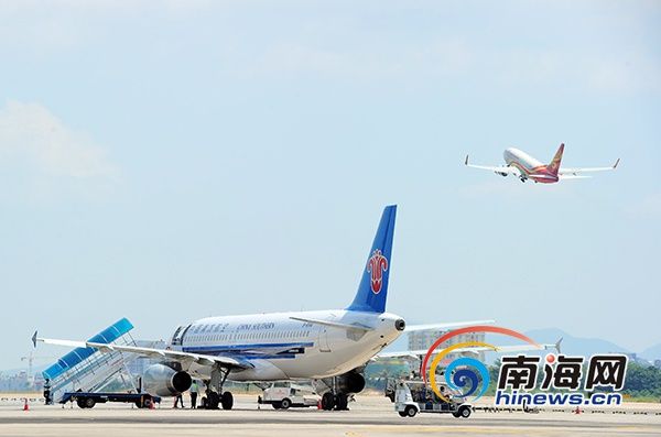 一架飛機從三亞鳳凰國際機場起飛。南海網記者 沙曉峰攝