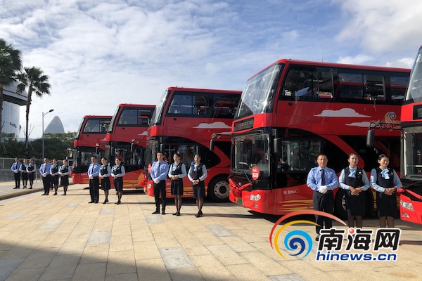 1月1日上午,三亞市雙層旅游觀光巴士線路開通儀式在三亞國際免稅城舉辦。 南海網記者 劉子榕攝