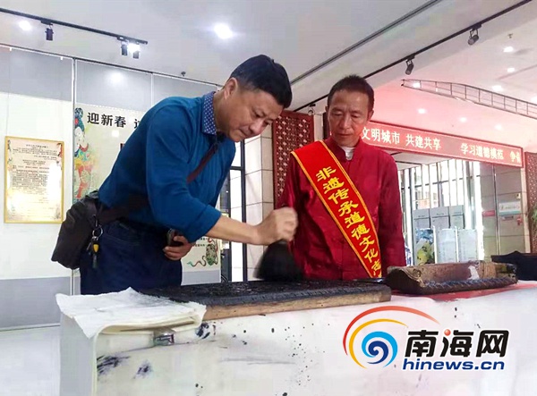市民在現場體驗印刷“武強年畫”。 南海網記者陳望 實習生李仁虎 攝