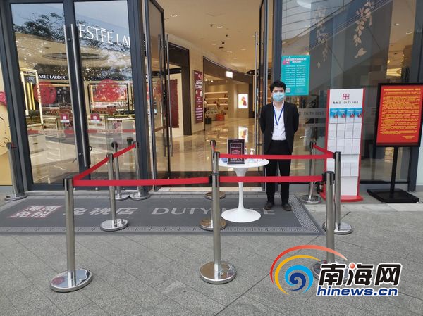 海口日月廣場(chǎng)免稅店將全面推行和實(shí)施“海南省健康一碼通系統(tǒng)”,每個(gè)出入口都安排了專人掃描進(jìn)店人員的個(gè)人健康碼,測(cè)量、登記進(jìn)店人員的體溫和檢查口罩佩戴情況,符合疫情防控要求方可進(jìn)店。免稅店供圖
