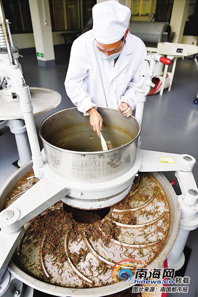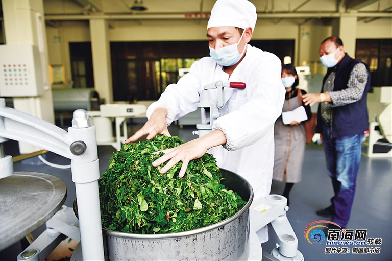 從小在五指山水滿鄉方龍村的茶農王雄青對于茶葉揉捻工藝再熟悉不過,一片茶葉自采摘下來,它本身的內含物就在不斷發生轉變,而把它的內含物激發到極致,加工成備受市場青睞的茶葉,則全靠茶工藝師的經驗判斷。制茶16年,在王雄青看來,從茶青到茶葉,就猶如烹飪一般,色香味俱全并不容易,需要匠心沉淀。