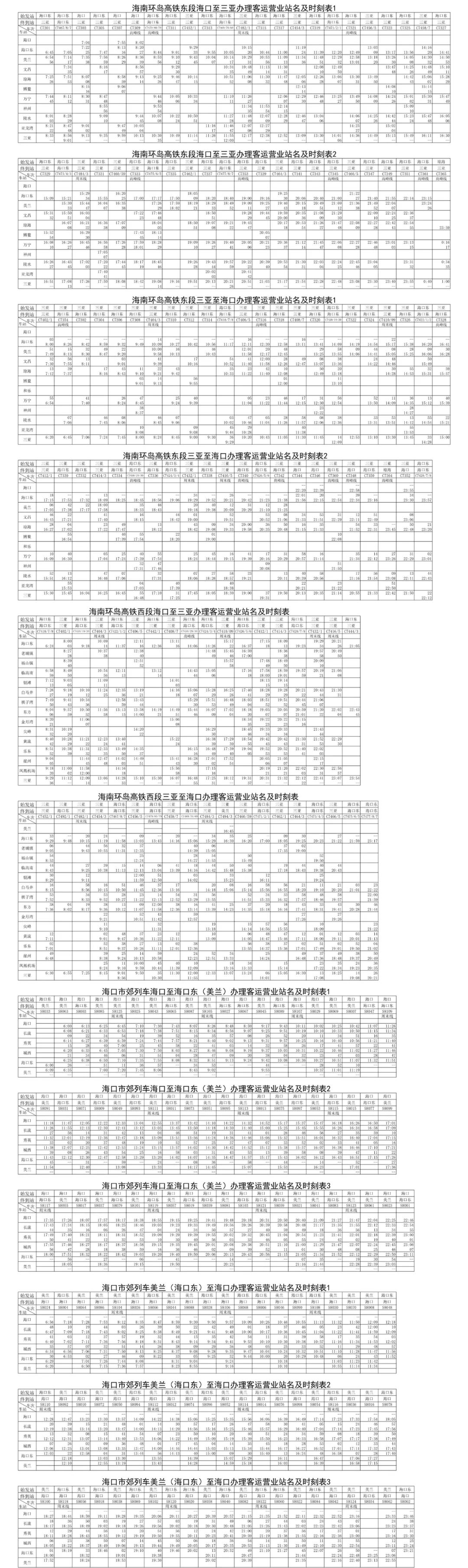 據(jù)了解,海南環(huán)島高鐵新列車運行圖開行“C”字頭動車組列車45.5對,其中東段本線車29對,三亞至三亞環(huán)島列車9.5對,??跂|至海口東環(huán)島列車7對,較舊圖增加2對東段本線車。新圖分為日常圖和周末圖。日常圖開行動車組列車33.5對,其中海南環(huán)島高鐵東段本線21對,三亞至三亞環(huán)島列車6.5對,海口東至??跂|環(huán)島列車6對,周末圖開行動車組列車36.5對,其中海南環(huán)島高鐵東段本線21對,三亞至三亞環(huán)島列車9.5對,??跂|至??跂|環(huán)島列車6對。
