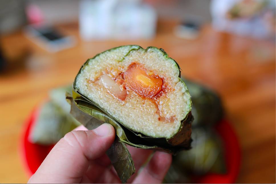 值得一提的是,相比以上兩種粽子,儋州洛基粽除了由豬肥肉、瘦肉、五花肉、雞肉、咸鴨蛋等材料制成外,還加入了魷魚絲。