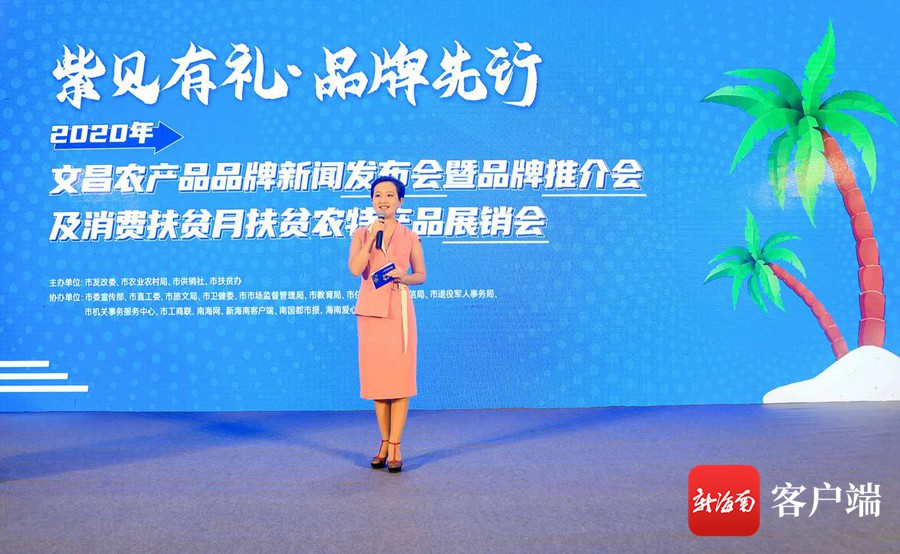 9月26日上午,紫貝有禮·品牌先行——2020年文昌農(nóng)產(chǎn)品品牌新聞發(fā)布會(huì)暨品牌推介會(huì)及消費(fèi)扶貧月扶貧農(nóng)特產(chǎn)品展銷會(huì)在文昌金石國際大酒店舉行。(活動(dòng)主辦方供圖)