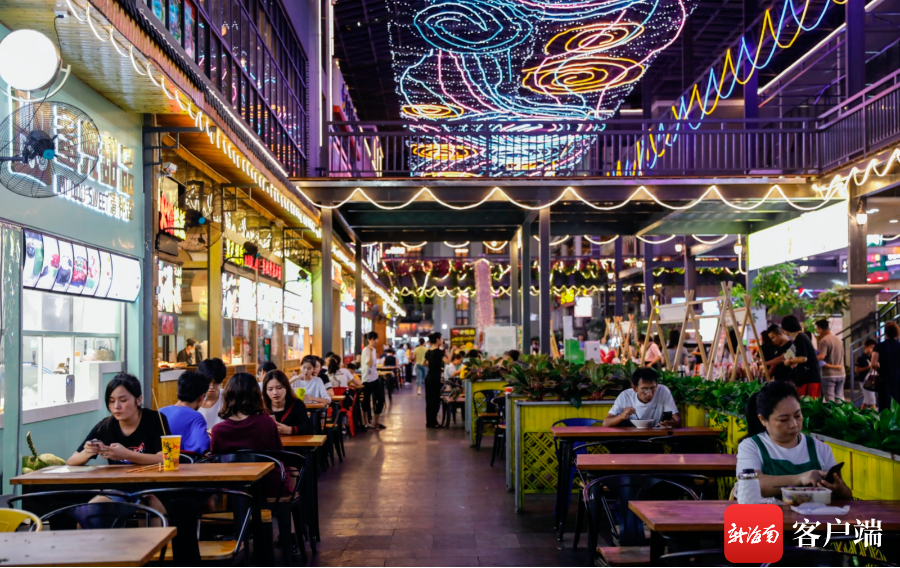 新海南客戶端、南海網、南國都市報10月4日消息(記者 杜倬荷)入夜時分,來到位于??谑行阌^的尋嘗里,仿佛穿越到一個色彩斑斕的都市桃源。以夢幻的燈光為伴,穿過高大中空的通道,陣陣“穿堂風”襲來,給食肆檔口的客人帶來絲絲愜意與安然。人們在這里推杯換盞、品嘗美食,細品著海口這座濱海城市獨特的文化魅力。在8天“超級黃金周”里,卸下一身繁忙與疲累,讓尋嘗里帶你赴一場“夜市江湖”。