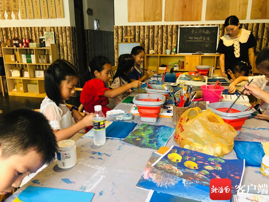 報告船長民宿公益學堂成了孩子畫畫的好去處。