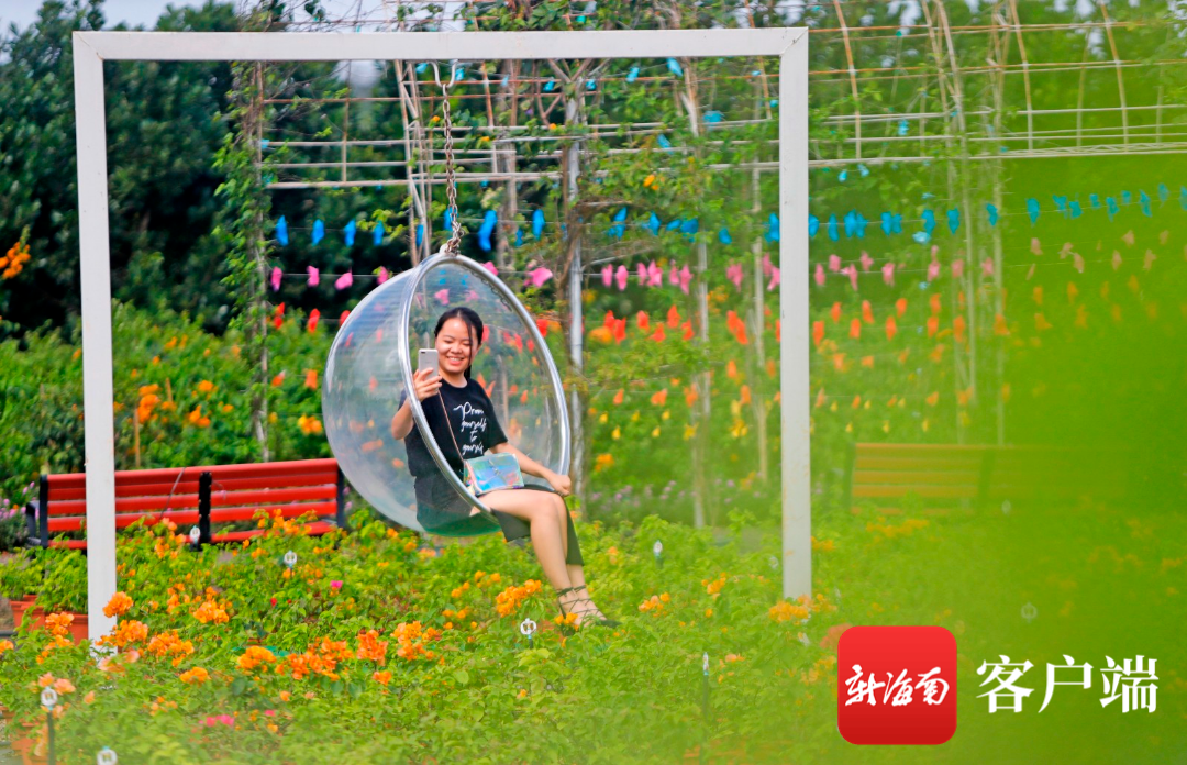 11月22日,記者來到海口三角梅共享農(nóng)莊,發(fā)現(xiàn)園內(nèi)綠意盎然,百花齊放,鮮紅欲滴的三角梅隨風(fēng)搖曳,不少市民游客在觀景臺(tái)散步、拍照。