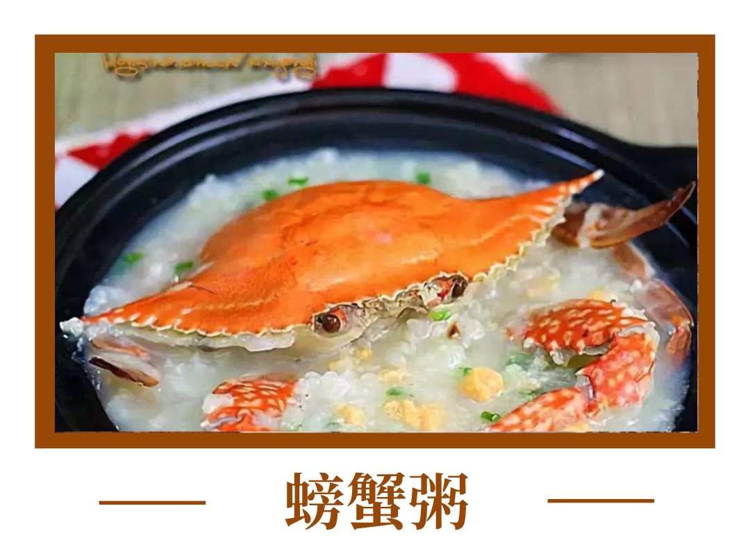 對本地人來說,海鮮粥是繞不走的海南味道。而海鮮粥的極品,莫過于螃蟹粥了。取材于海南的螃蟹,螃蟹有肉蟹、膏蟹,可以根據你的口味來熬粥,再搭配蝦仁用生米粥熬制而成。一鍋鮮滑香稠的蟹粥里,螃蟹豐肥鮮美,趕緊趁熱抿了幾口,粘稠、鮮甜、入味!