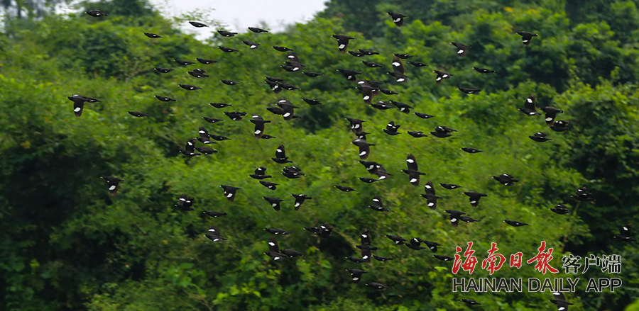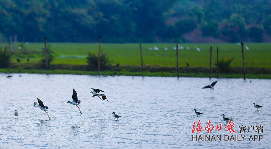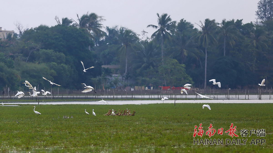 2020年12月9日,時下北方正寒冬,海南溫暖如春,過冬的候鳥紛紛飛來??跂|寨港濕地棲息、覓食。