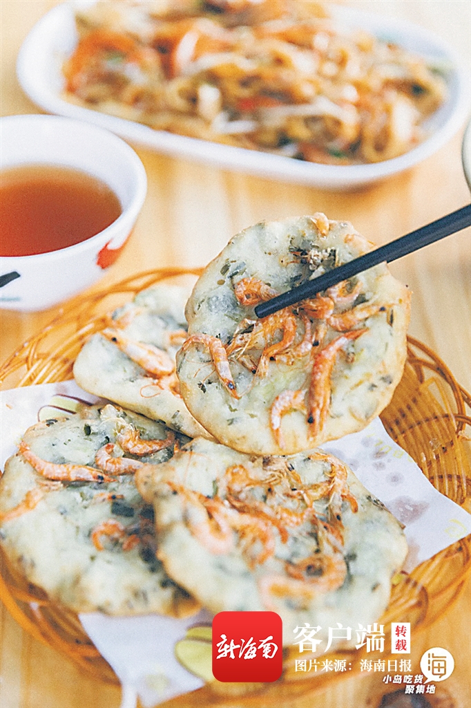 東方的蝦餅也是一大特色小吃。高海峰說,和臨高用韭菜搭配的做法不同,八所蝦餅用的是蔥花和小蝦,小蝦更易炸脆,可以整只吃下都不留渣,“而蝦和蔥結合,是大海和大地的文化糅合形成一種大自然的芳香!”他說。