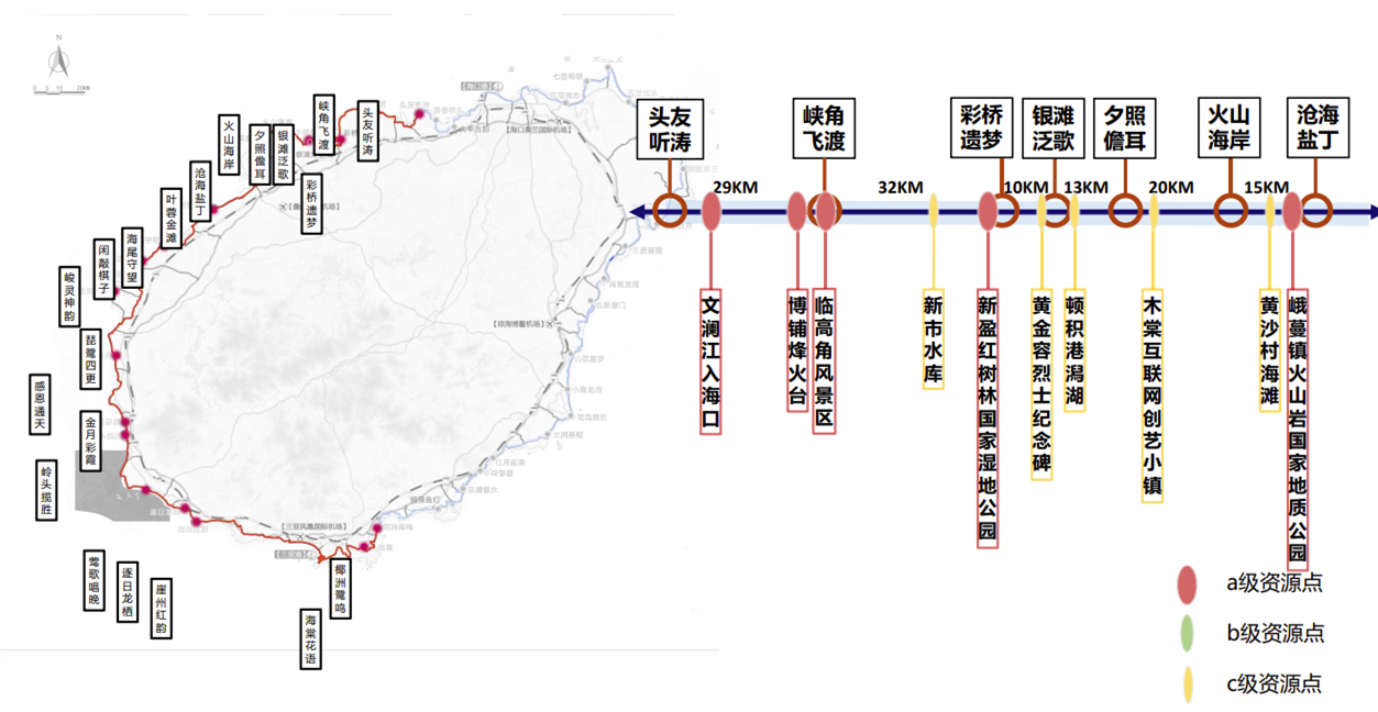 馬吉倩稱,環島旅游公路主要作用是串景,沿途的旅游資源就是這條項鏈上的“珍珠”。旅游公路建成后,可以構建起“快進慢游”的系統,游客可以通過環島高鐵、環島高速快速地抵達旅游目的地,并進入旅游公路構建的“慢游”系統。游客可以在旅游公路上散步、騎車、自駕,遇到風景時可在觀景臺駐足欣賞,還可以通過這條路的延伸,享受沿途的自然景點、人文景觀等,例如沿途的民宿、驛站、美麗鄉村、特色城鎮等。