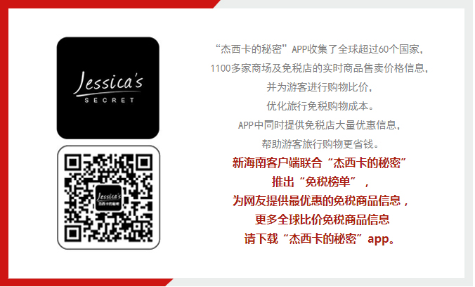 基于全球比價(jià)APP“杰西卡的秘密”百萬(wàn)用戶周期內(nèi)點(diǎn)擊熱門商品排名,新海南聯(lián)合“杰西卡的秘密”推出“最受關(guān)注免稅品榜單”,在未來(lái)的日子里,將會(huì)以“周榜單”和“月榜單”和大家見(jiàn)面~