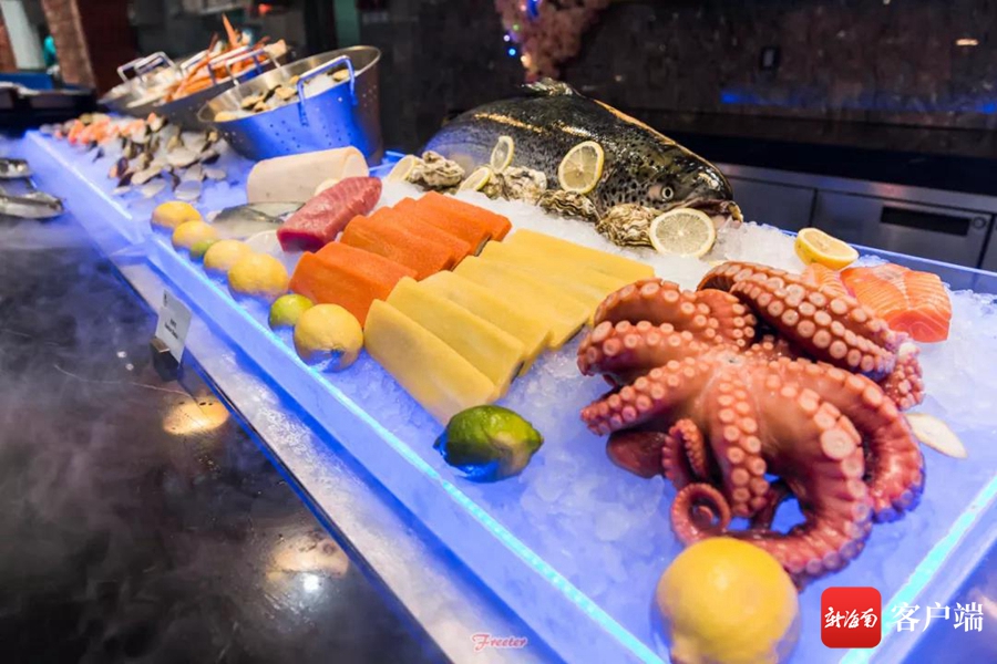 海口萬豪酒店島嶼尚膳西餐廳海鮮自助區。飛特生活館供圖
