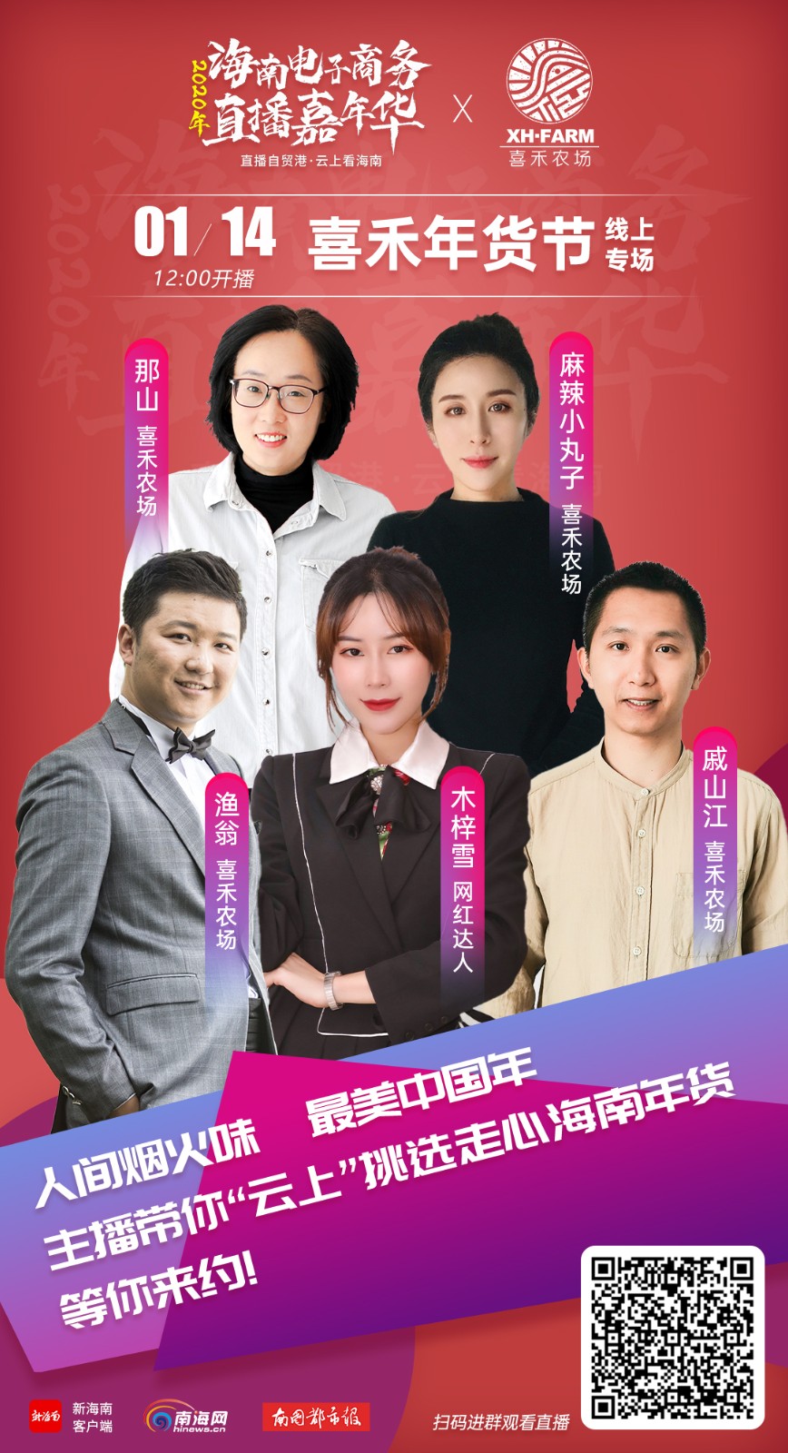 新海南客戶端、南海網、南國都市報 1月13日消息(記者 吳興)春節的腳步越來越近。“過大年,辦年貨”,是準備辭舊迎新的開始,濃縮著十足的年味,置辦年貨買些什么?2020年海南電子商務直播嘉年華系列活動——“喜禾線上年貨節”專場直播,將為你帶來海南年貨種草攻略。于1月14日12時開播的“喜禾線上年貨節”,將在直播現場進行海南、杭州兩地連線,向全國網友推薦十幾款精心準備的年節好物,網友還可“云游”位于海南儋州的田園綜合體。此外,直播間內還有無門檻代金券、超值好禮等你領。