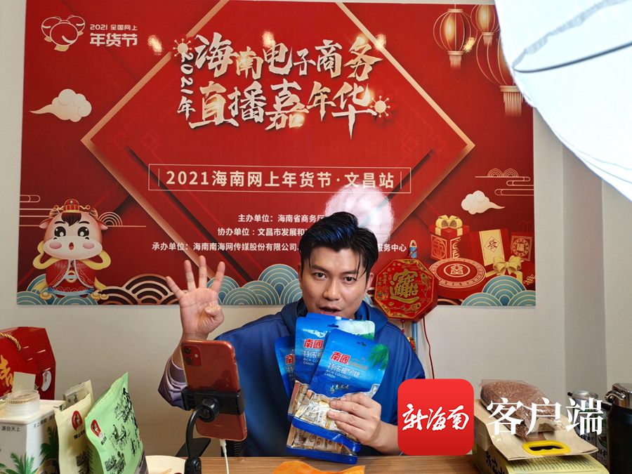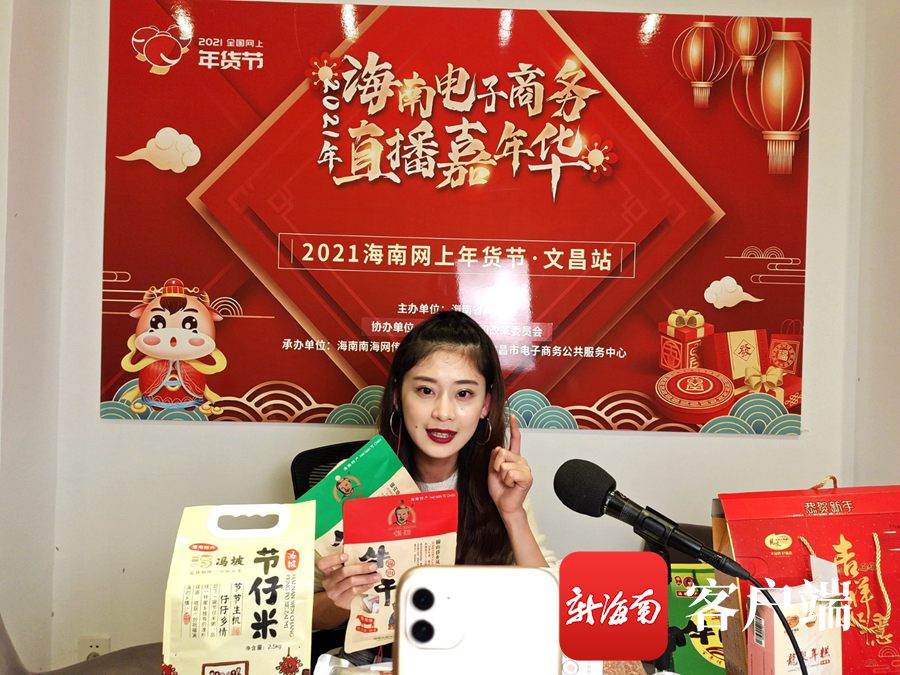 新海南客戶端、南海網、南國都市報2月2日消息(記者 吳興)“文昌錦山張雄牛肉干,在直播間下單,就能享超值福利,大家趕緊搶購啦。”2月1日晚,2021海南網上年貨節文昌分會場火熱開播,海南本土網紅海南瀟灑姐、麥意、七七、小象呈鮮、海南小立哥,在文昌市電子商務公共服務中心,為hellococo、椰嗨喃、張雄牛肉干、重興陳記、潮記文昌雞等海南品牌代言,攜具有濃濃年味的文昌年貨亮相直播間,還推出滿減優惠、抽獎互動、禮品贈送等福利,滿足居家群眾多元化的購物需求。