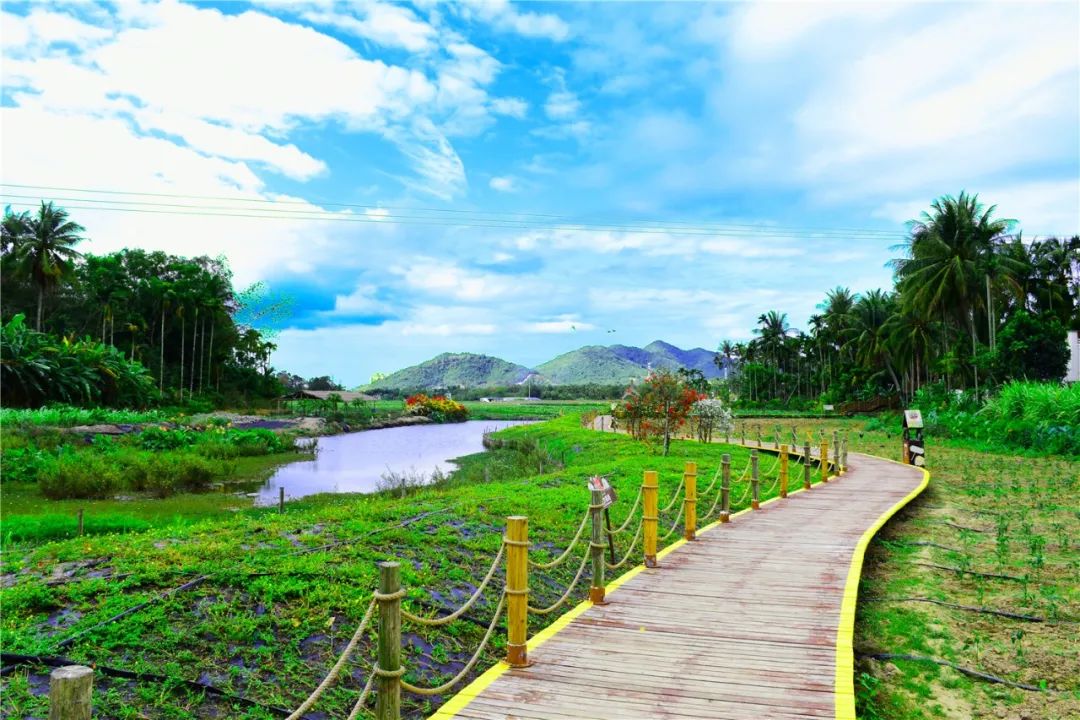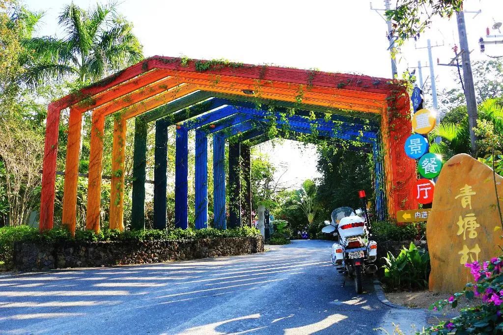 初入青塘村,仿佛置身于充滿童趣的世界。這里有不同風格的民居和咖啡吧,兒童游樂場、椰林、田野、荷塘等讓人應接不暇,氣氛安靜又祥和。