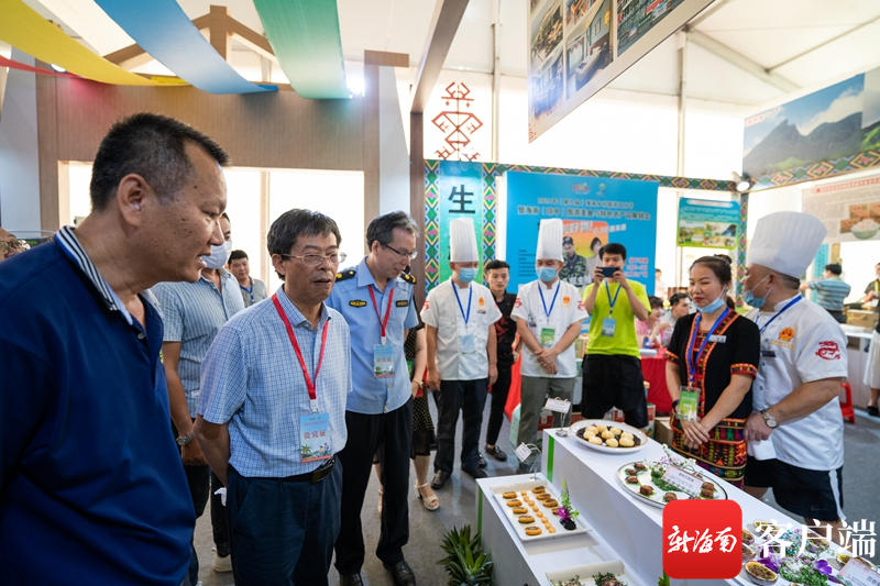 在開幕式現場,海南(瓊中)旅游美食與特色農產品展銷會作為活動一部分,展示了瓊中及海南各市縣特色鄉村旅游景區、景點、鄉村特色食品、特色旅游商品、助農產品、土特產、海南一鎮一品農副產品;活動通過展示、品嘗、銷售等形式展現海南旅游美食和農產品食材。