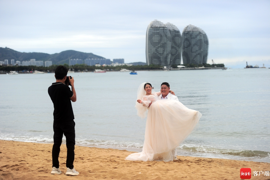 5月3日,新人在三亞灣拍攝婚紗照。記者 沙曉峰 攝