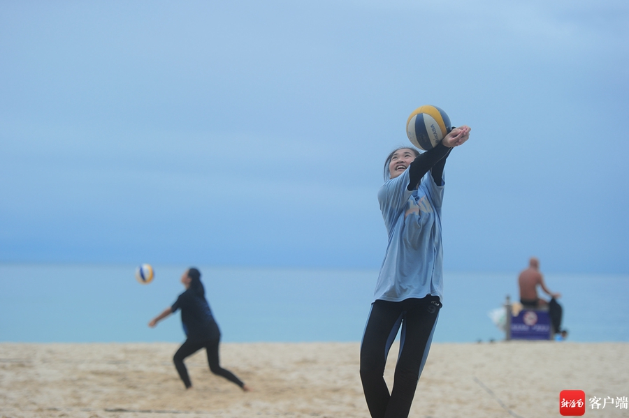 5月2日,游人在大東海玩排球。記者 沙曉峰 攝