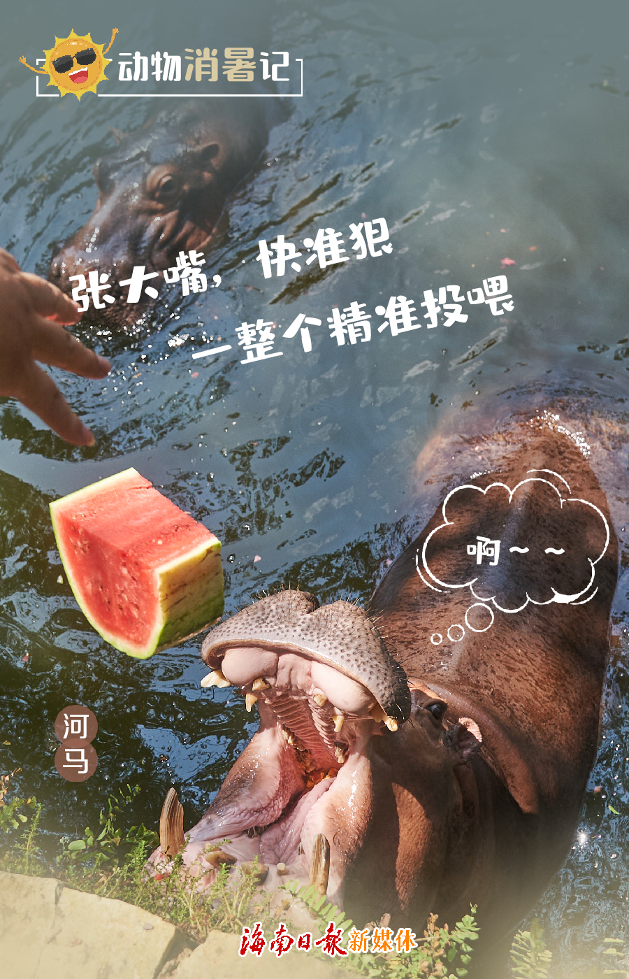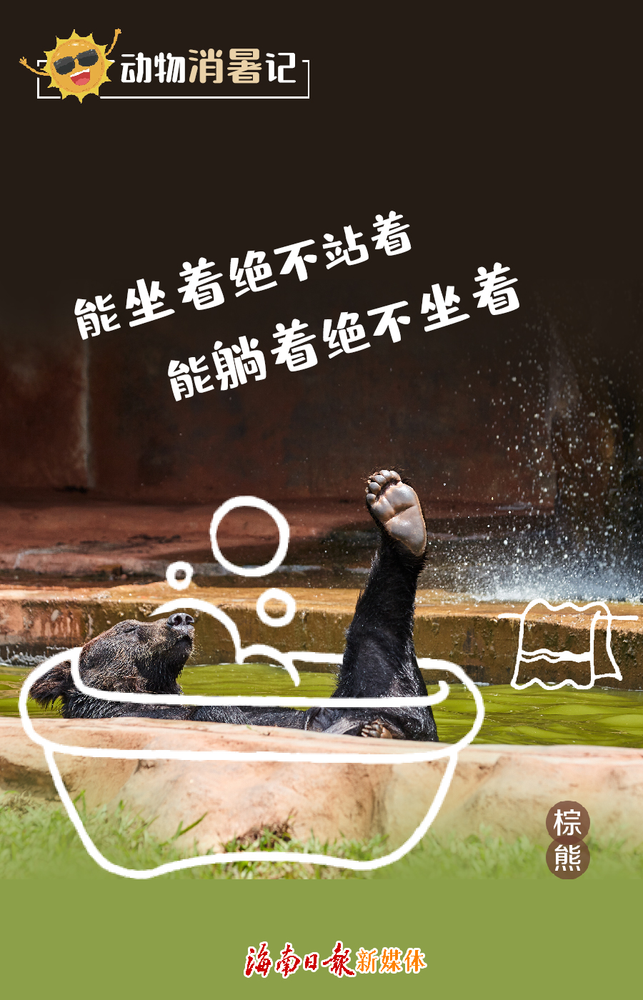 在海南,三伏天的午后,氣溫攀升,濕熱的空氣容易使人無精打采,動物也不例外。面對陣陣暑氣,為了給動物們消暑納涼,海南熱帶野生動植物園的保育員們使出了渾身解數。下面一組創意海報,帶你看看動物們的消暑“涼方”。