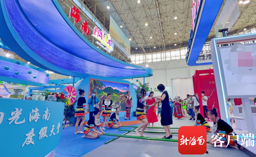在本次展會上,海南館精彩亮相,設置了150平方米特裝展館,以“陽光海南,度假天堂”為主題,重點展示海南自由貿易港形象,離島免稅政策和海洋、康養、體育、文化、鄉村、婚慶等13大類海南旅游產品。