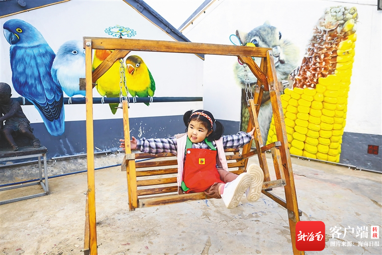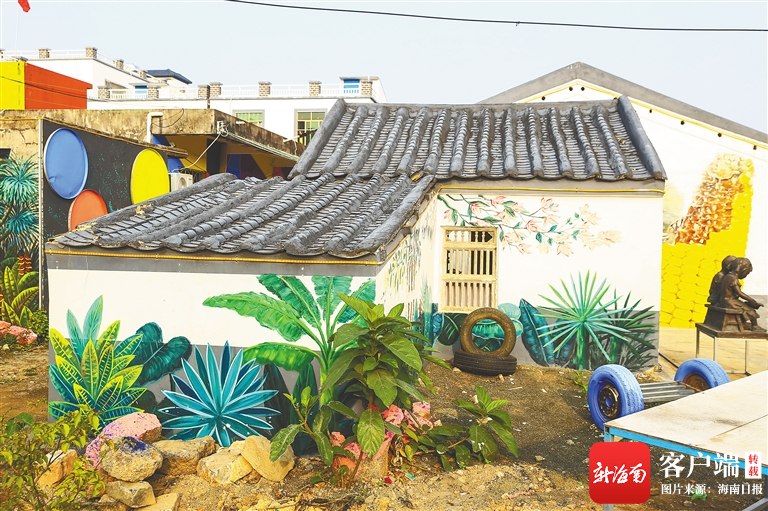 陽(yáng)光下,幾只藍(lán)黃色鸚鵡“交頭接耳”,萌態(tài)十足的松鼠正“啃”著玉米……這是海口898藝術(shù)村的房屋墻體上,所展現(xiàn)出的一幅幅栩栩如生的畫面。漫步在村中小道,椰子樹、三角梅等極具特色的海南元素,都化身為一幅幅畫作“爬”上了老房子的外墻,吸引著市民游客紛紛駐足拍照,也盤活了這座歷經(jīng)百年滄桑的古村落。
