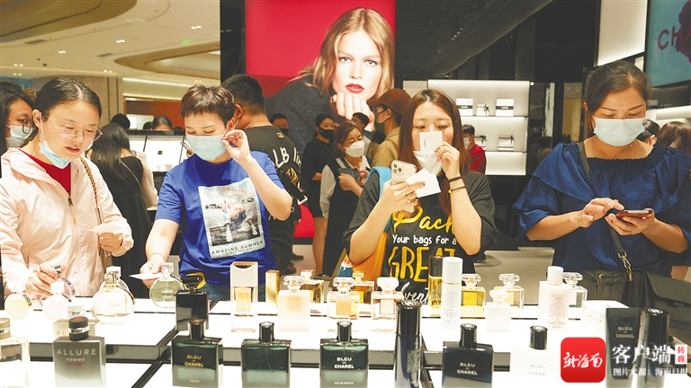 顧客在選購(gòu)免稅美妝商品。海南日?qǐng)?bào)記者 張茂 攝