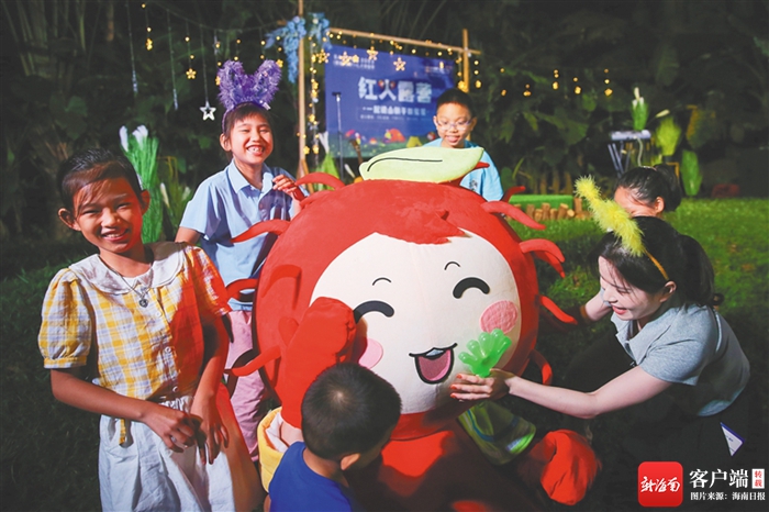 紅毛丹玩偶為小朋友帶來別樣樂趣。海南日報記者 王程龍 攝