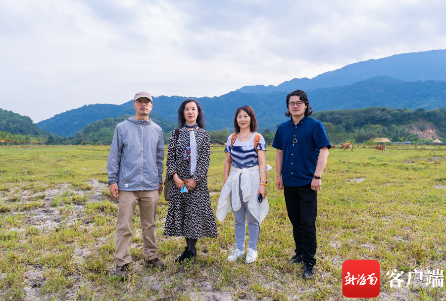 11月2日,“走進黎族”文化名家采風團來到黎鄉大里。圖中從左到右依次為:黃梵、林雪、馮晏、胡竹峰。記者 李昊 攝
