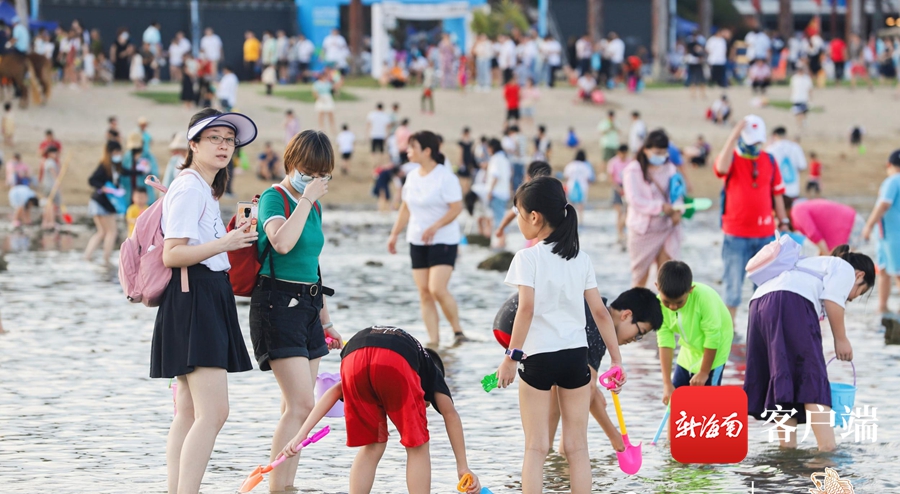 資料圖:游客在瓊海潭門體驗趕海。 海南日報記者 袁琛 攝