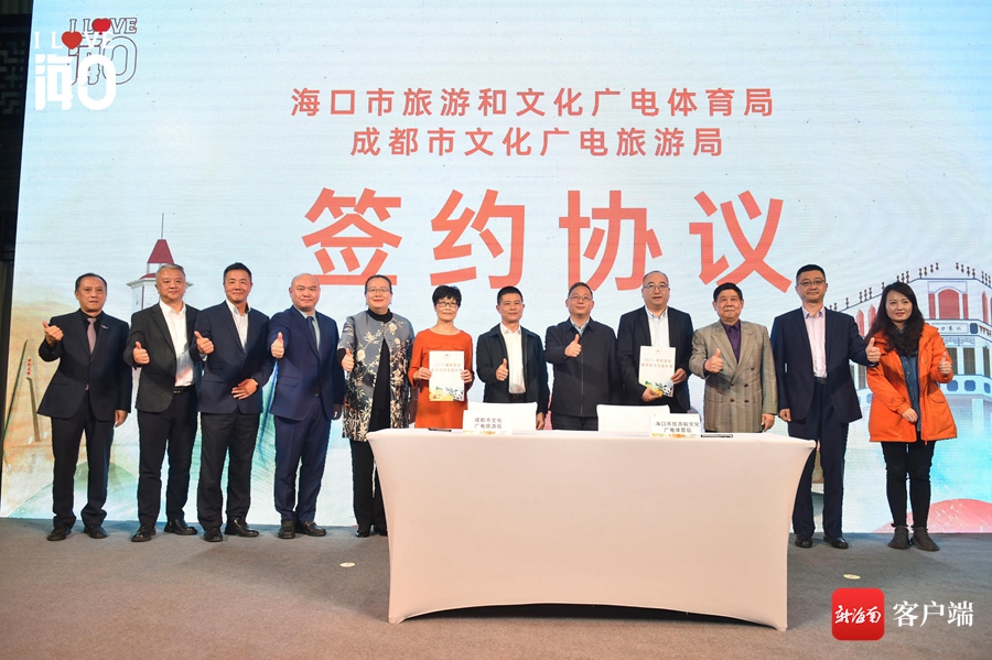 交流會(huì)現(xiàn)場(chǎng),海口市旅文局和成都市文廣旅局共同就??诤统啥純傻芈糜伟l(fā)展及游客互送簽署合作協(xié)議。同時(shí),開(kāi)啟了2023椰來(lái)蓉往春季游客互送計(jì)劃。