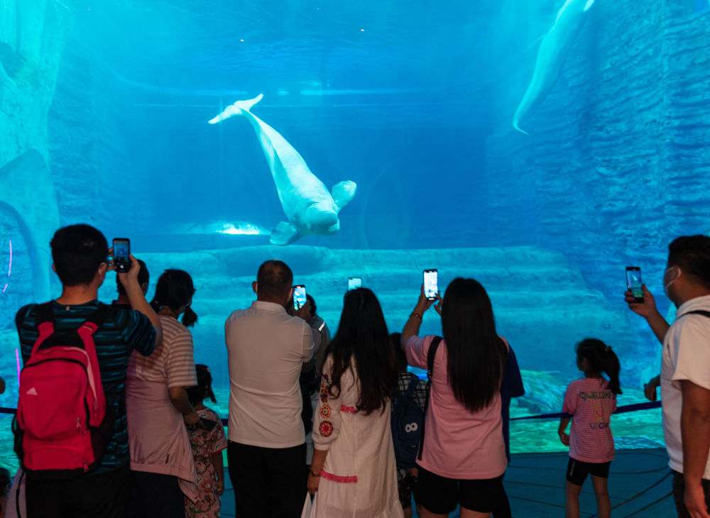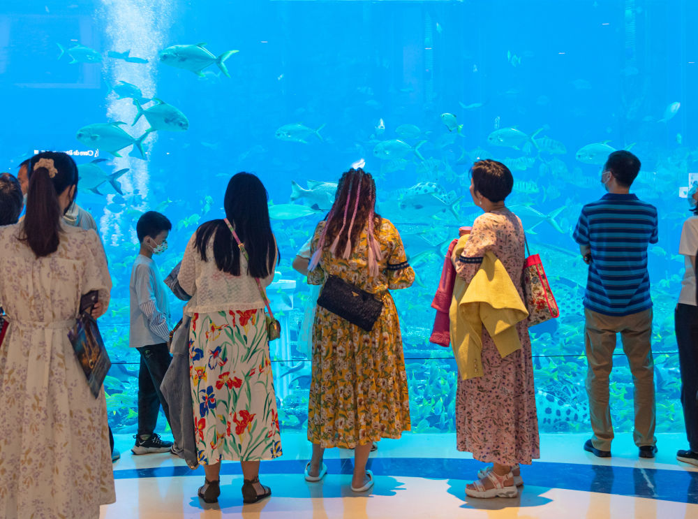 ↑游客在海南三亞亞特蘭蒂斯酒店水族館參觀游玩(2022年12月30日攝)。新華社發(王學 攝)