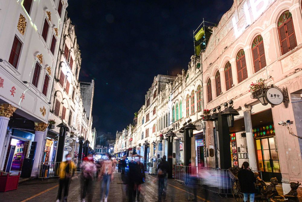 ↑游客在海口騎樓老街游玩(2022年12月31日攝)。新華社記者 蒲曉旭 攝