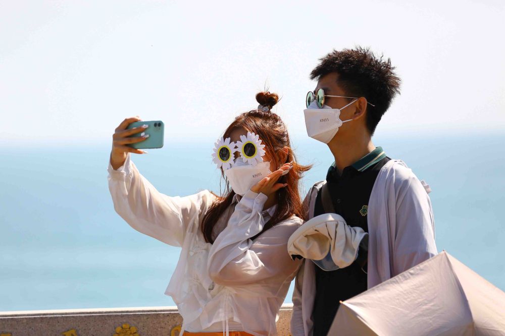 ↑游客在海南三亞南山文化旅游區參觀游玩(2022年12月29日攝)。新華社發(陳文武 攝)