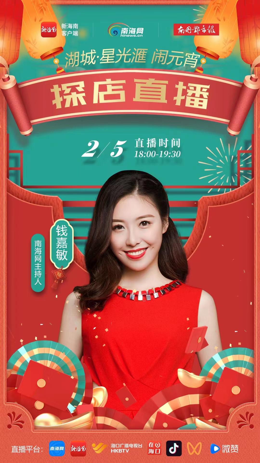 ??诃偵絽^5日18時開啟探店直播,南海網主持人錢嘉敏帶您逛??诤切枪鈪R“鬧元宵”。