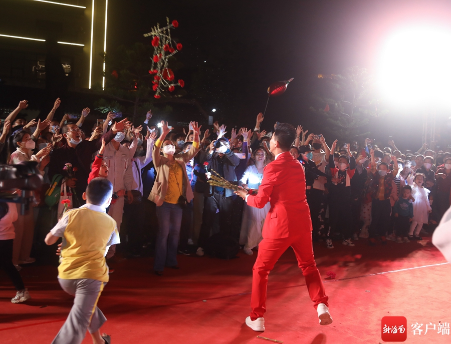 廣場換花舞表演間隙,主持人與市民游客熱鬧互動。記者 姚皓 攝