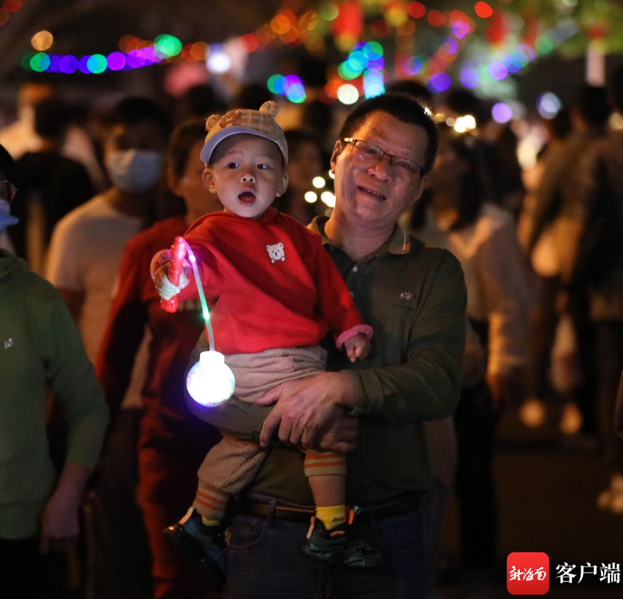 海口府城元宵夜,市民帶著各類燈飾。記者 姚皓 攝