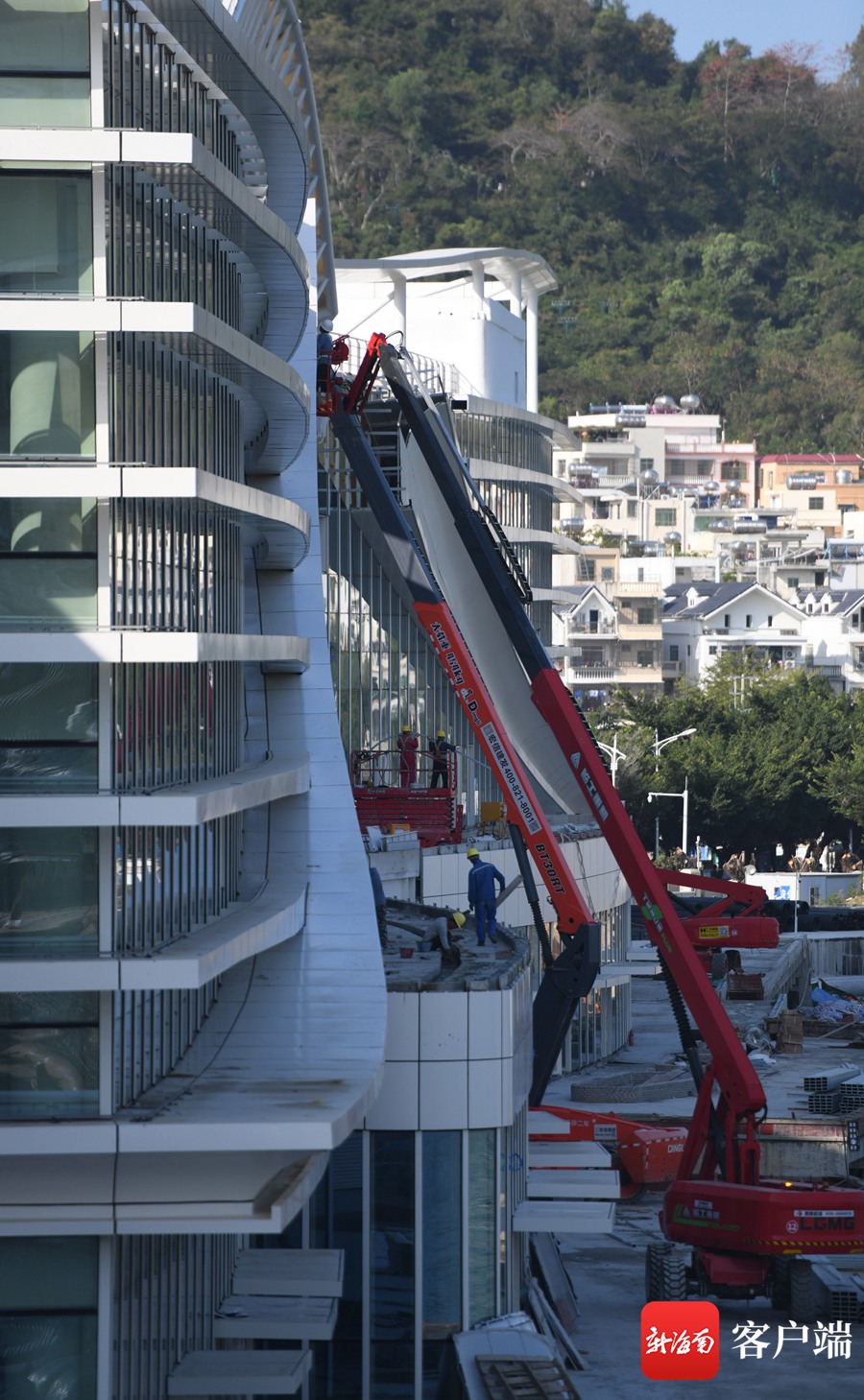 2月23日,記者在位于三亞中央商務區鳳凰海岸單元南邊海片區的三亞國際游艇中心項目施工現場看到,工人們正在有條不紊地進行作業,一派繁忙景象。據現場的負責人介紹,目前約240名工人在各自崗位有序進行膜結構、精裝修以及室外園林綠化等工作,該項目已經進入收尾階段,將于3月底完成建設。